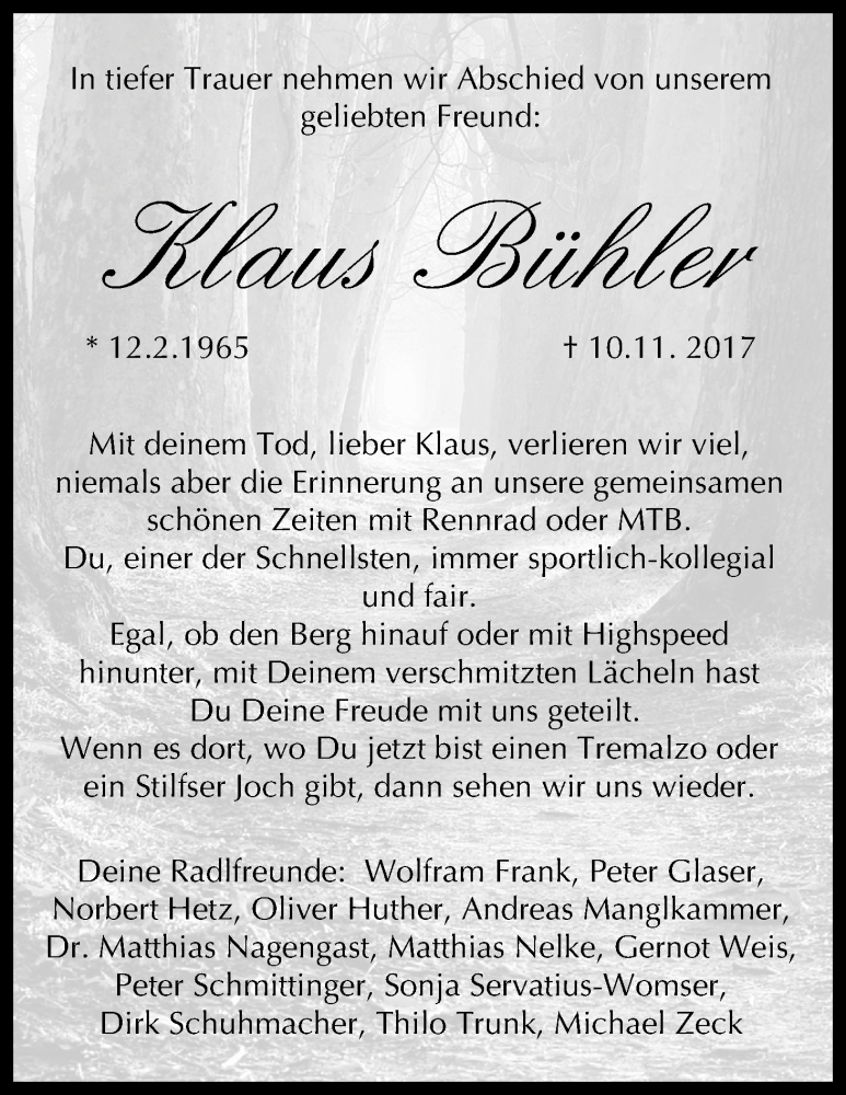 Hier finden Sie alle Traueranzeigen aus der Zeitung, die bisher für Klaus Bühler erschienen sind. Weitere Traueranzeigen, die in der Zeitung erscheinen, werden hier ebenfalls aufgelistet