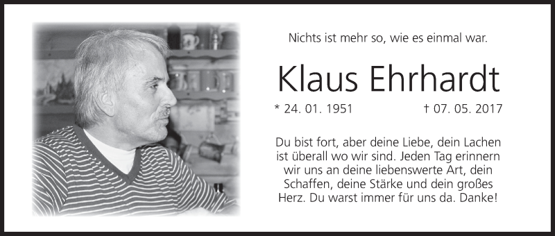 Hier finden Sie alle Traueranzeigen aus der Zeitung, die bisher für Klaus Ehrhardt erschienen sind. Weitere Traueranzeigen, die in der Zeitung erscheinen, werden hier ebenfalls aufgelistet