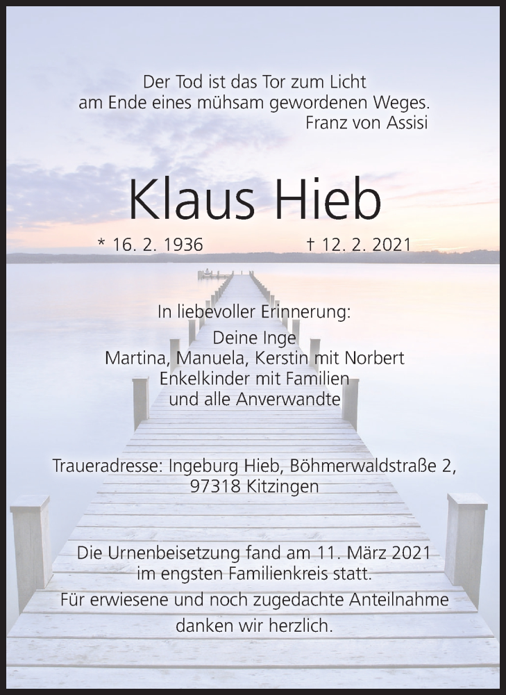 Hier finden Sie alle Traueranzeigen aus der Zeitung, die bisher für Klaus Hieb erschienen sind. Weitere Traueranzeigen, die in der Zeitung erscheinen, werden hier ebenfalls aufgelistet