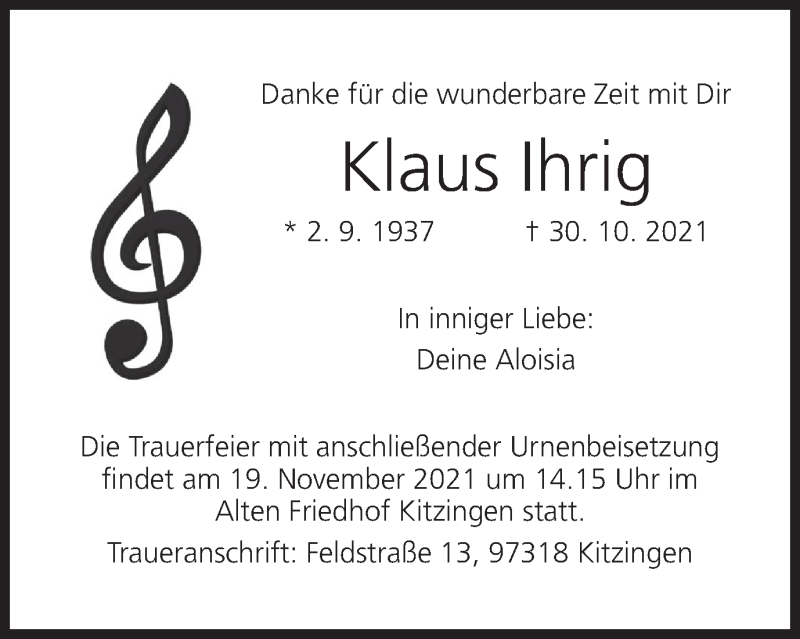 Hier finden Sie alle Traueranzeigen aus der Zeitung, die bisher für Klaus Ihrig erschienen sind. Weitere Traueranzeigen, die in der Zeitung erscheinen, werden hier ebenfalls aufgelistet