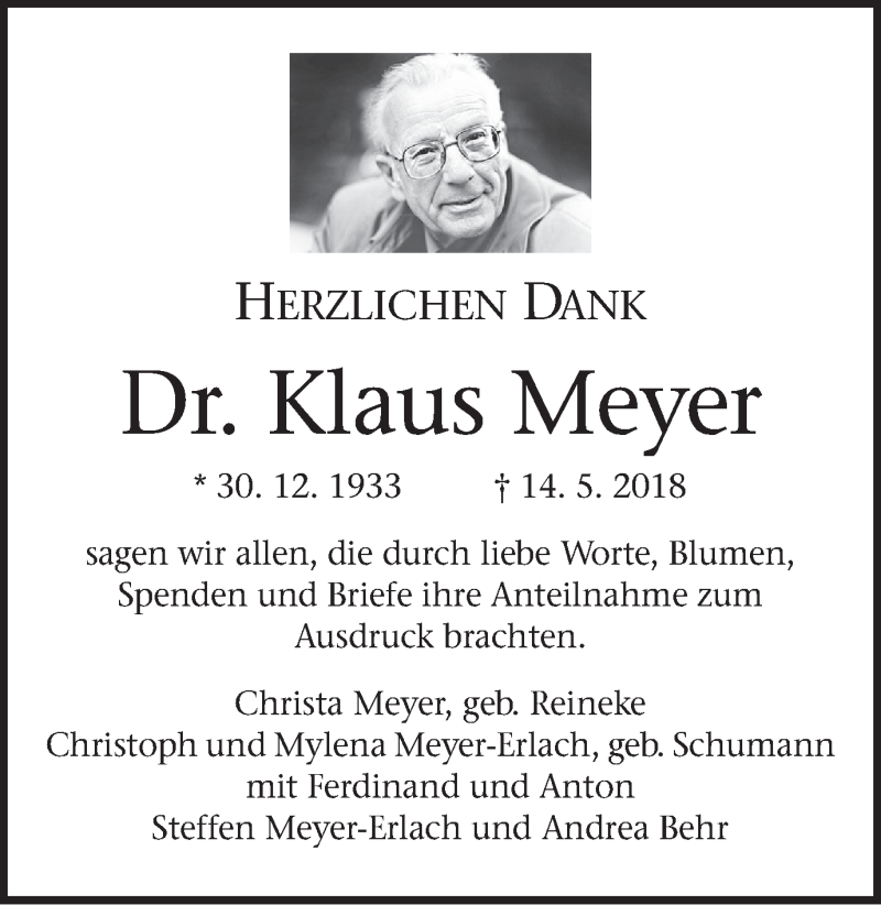 Hier finden Sie alle Traueranzeigen aus der Zeitung, die bisher für Klaus Meyer erschienen sind. Weitere Traueranzeigen, die in der Zeitung erscheinen, werden hier ebenfalls aufgelistet