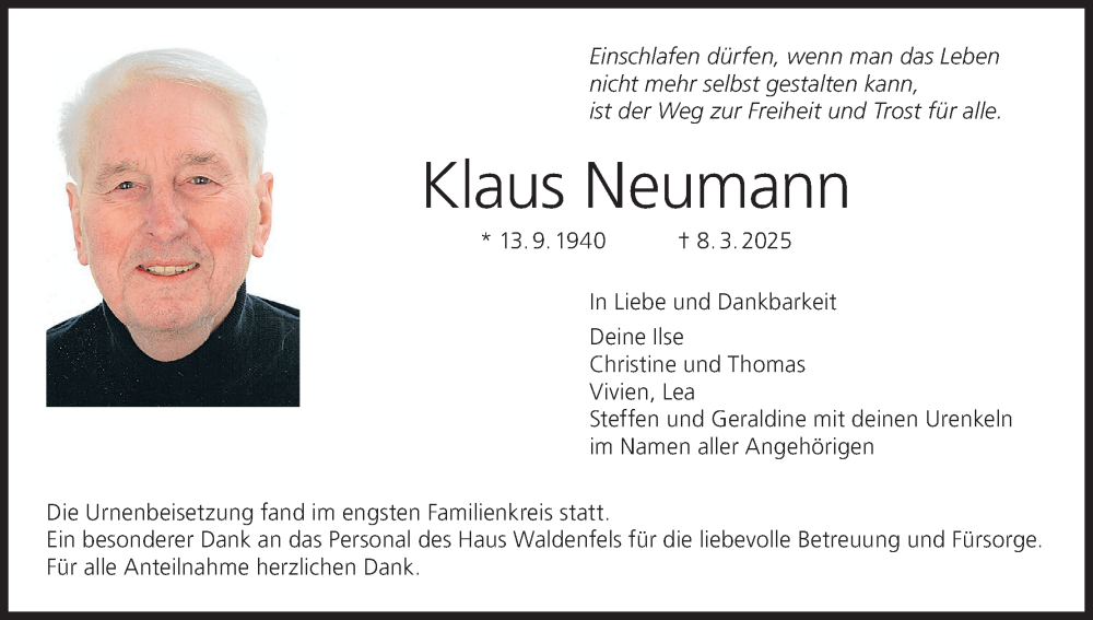 Hier finden Sie alle Traueranzeigen aus der Zeitung, die bisher für Klaus Neumann erschienen sind. Weitere Traueranzeigen, die in der Zeitung erscheinen, werden hier ebenfalls aufgelistet