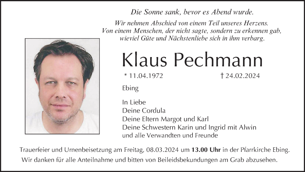 Hier finden Sie alle Traueranzeigen aus der Zeitung, die bisher für Klaus Pechmann erschienen sind. Weitere Traueranzeigen, die in der Zeitung erscheinen, werden hier ebenfalls aufgelistet