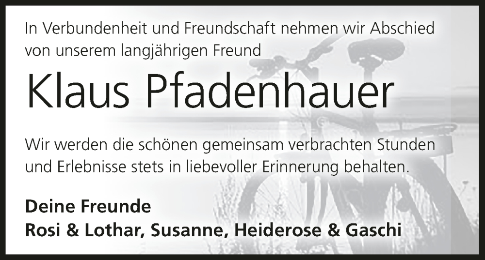 Hier finden Sie alle Traueranzeigen aus der Zeitung, die bisher für Klaus Pfadenhauer erschienen sind. Weitere Traueranzeigen, die in der Zeitung erscheinen, werden hier ebenfalls aufgelistet