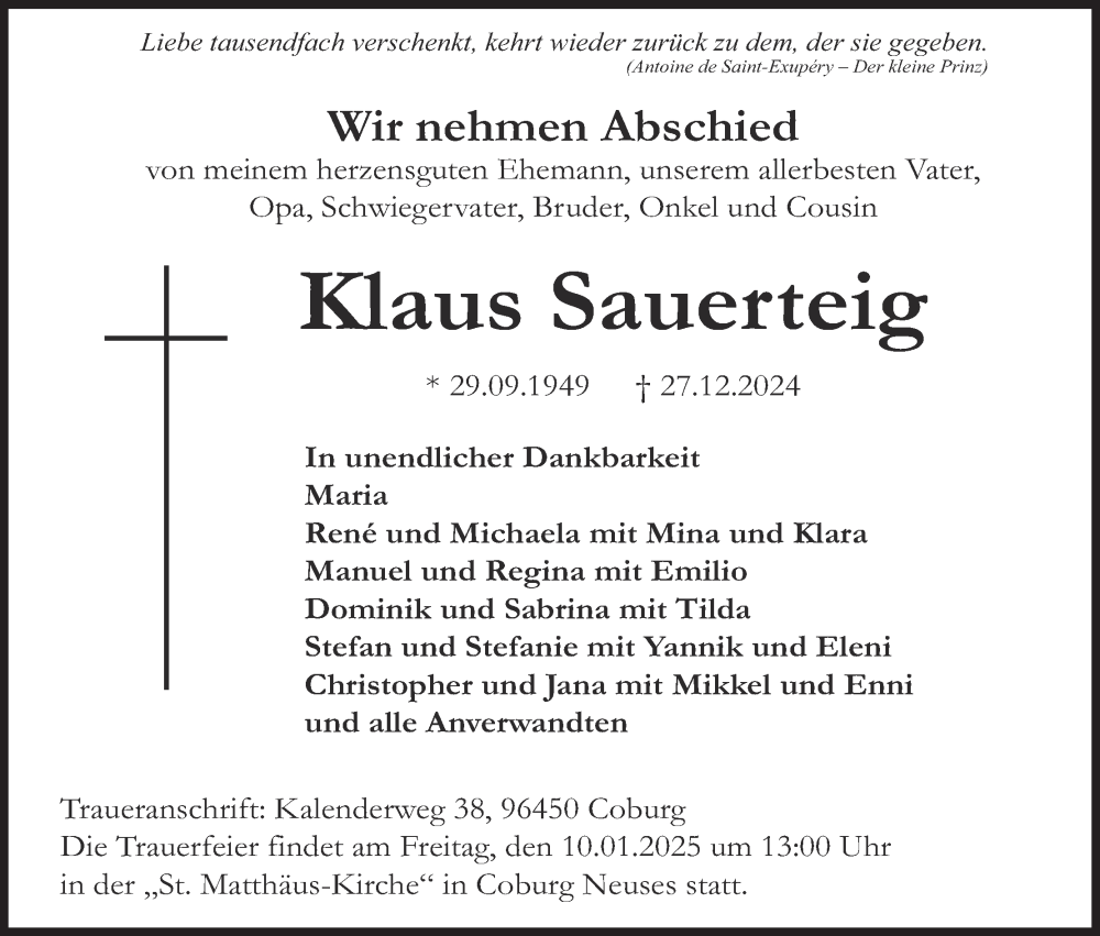 Hier finden Sie alle Traueranzeigen aus der Zeitung, die bisher für Klaus Sauerteig erschienen sind. Weitere Traueranzeigen, die in der Zeitung erscheinen, werden hier ebenfalls aufgelistet