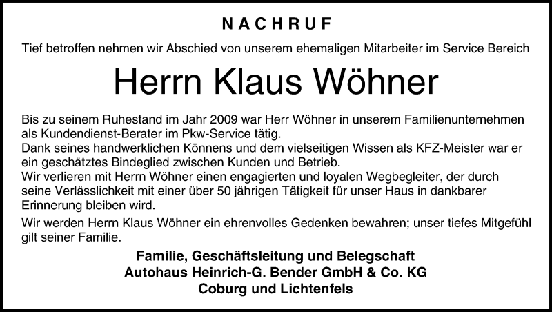 Hier finden Sie alle Traueranzeigen aus der Zeitung, die bisher für Klaus Wöhner erschienen sind. Weitere Traueranzeigen, die in der Zeitung erscheinen, werden hier ebenfalls aufgelistet