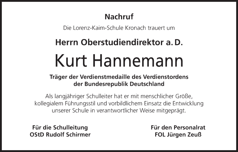 Hier finden Sie alle Traueranzeigen aus der Zeitung, die bisher für Kurt Hannemann erschienen sind. Weitere Traueranzeigen, die in der Zeitung erscheinen, werden hier ebenfalls aufgelistet