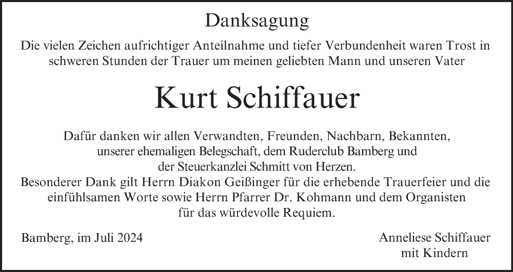 Hier finden Sie alle Traueranzeigen aus der Zeitung, die bisher für Kurt Schiffauer erschienen sind. Weitere Traueranzeigen, die in der Zeitung erscheinen, werden hier ebenfalls aufgelistet