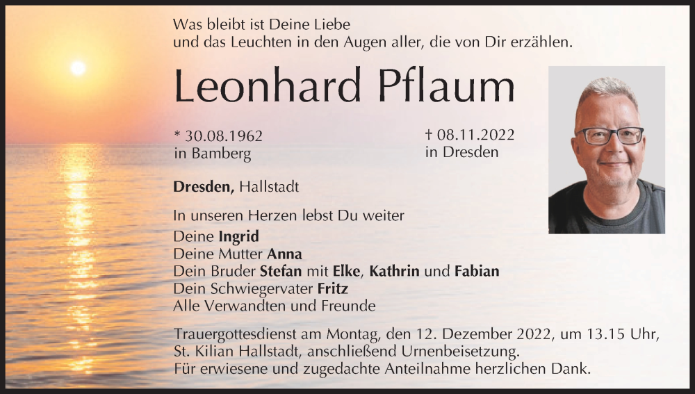 Hier finden Sie alle Traueranzeigen aus der Zeitung, die bisher für Leonhard Pflaum erschienen sind. Weitere Traueranzeigen, die in der Zeitung erscheinen, werden hier ebenfalls aufgelistet