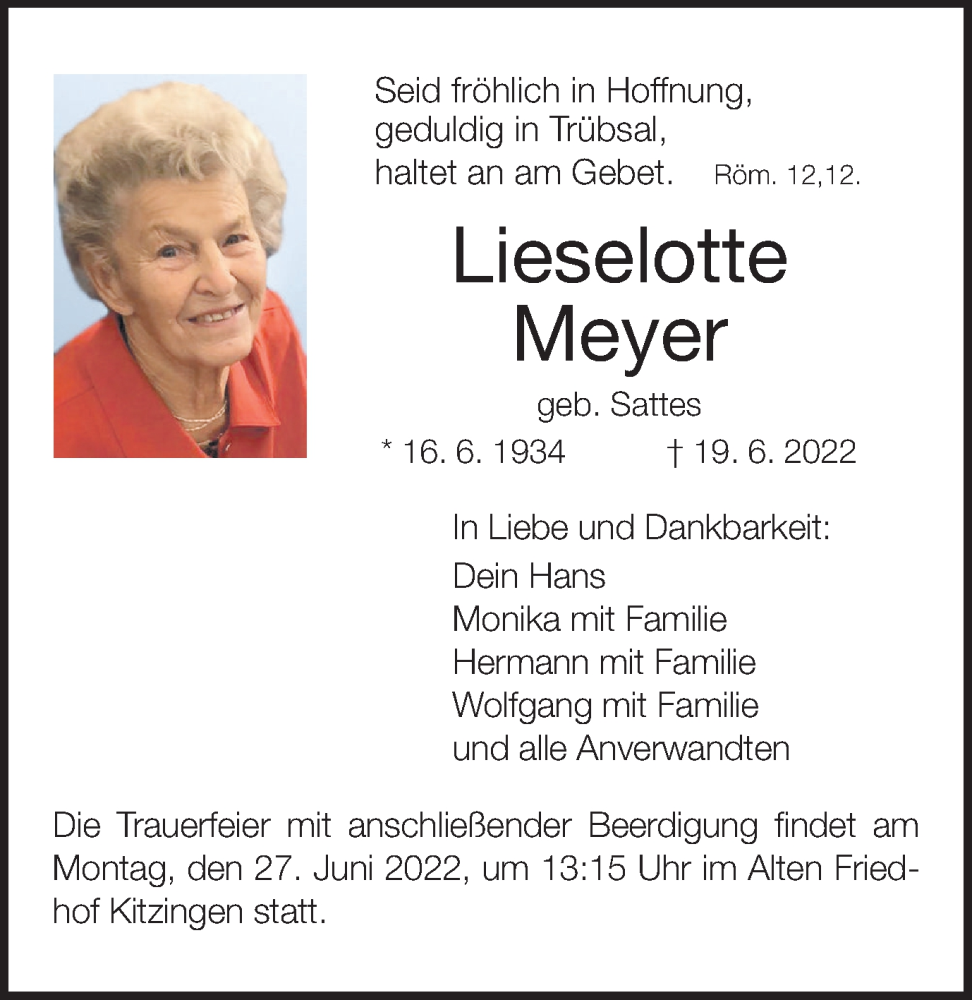 Hier finden Sie alle Traueranzeigen aus der Zeitung, die bisher für Lieselotte Meyer erschienen sind. Weitere Traueranzeigen, die in der Zeitung erscheinen, werden hier ebenfalls aufgelistet