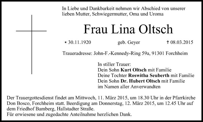 Hier finden Sie alle Traueranzeigen aus der Zeitung, die bisher für Lina Oltsch erschienen sind. Weitere Traueranzeigen, die in der Zeitung erscheinen, werden hier ebenfalls aufgelistet