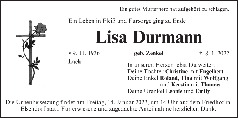 Hier finden Sie alle Traueranzeigen aus der Zeitung, die bisher für Lisa Durmann erschienen sind. Weitere Traueranzeigen, die in der Zeitung erscheinen, werden hier ebenfalls aufgelistet