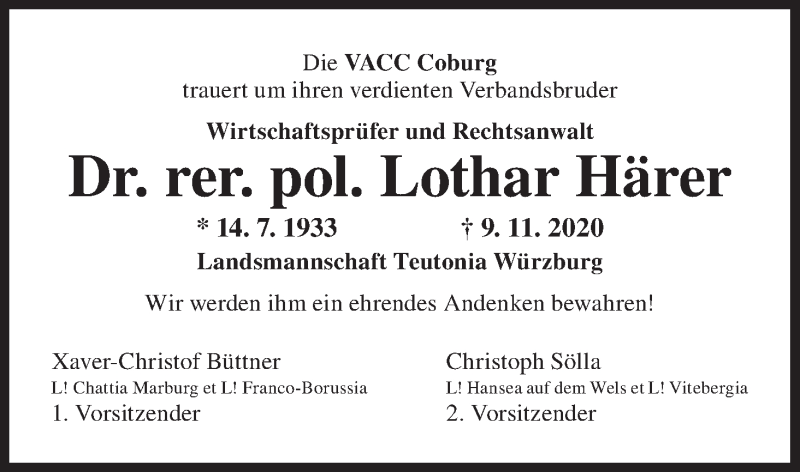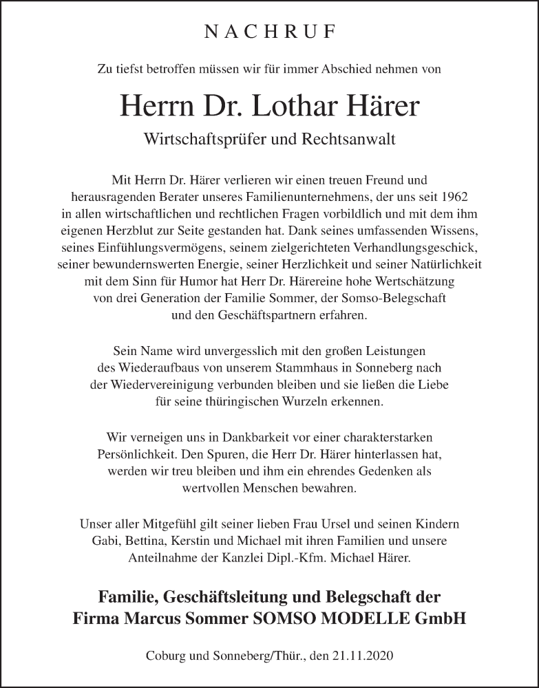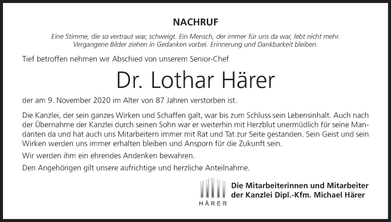 Hier finden Sie alle Traueranzeigen aus der Zeitung, die bisher für Lothar Härer erschienen sind. Weitere Traueranzeigen, die in der Zeitung erscheinen, werden hier ebenfalls aufgelistet
