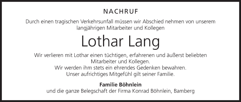 Hier finden Sie alle Traueranzeigen aus der Zeitung, die bisher für Lothar Lang erschienen sind. Weitere Traueranzeigen, die in der Zeitung erscheinen, werden hier ebenfalls aufgelistet
