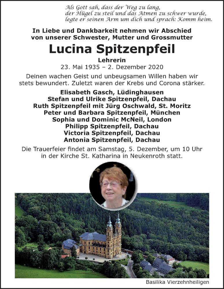 Hier finden Sie alle Traueranzeigen aus der Zeitung, die bisher für Lucina Spitzenpfeil erschienen sind. Weitere Traueranzeigen, die in der Zeitung erscheinen, werden hier ebenfalls aufgelistet