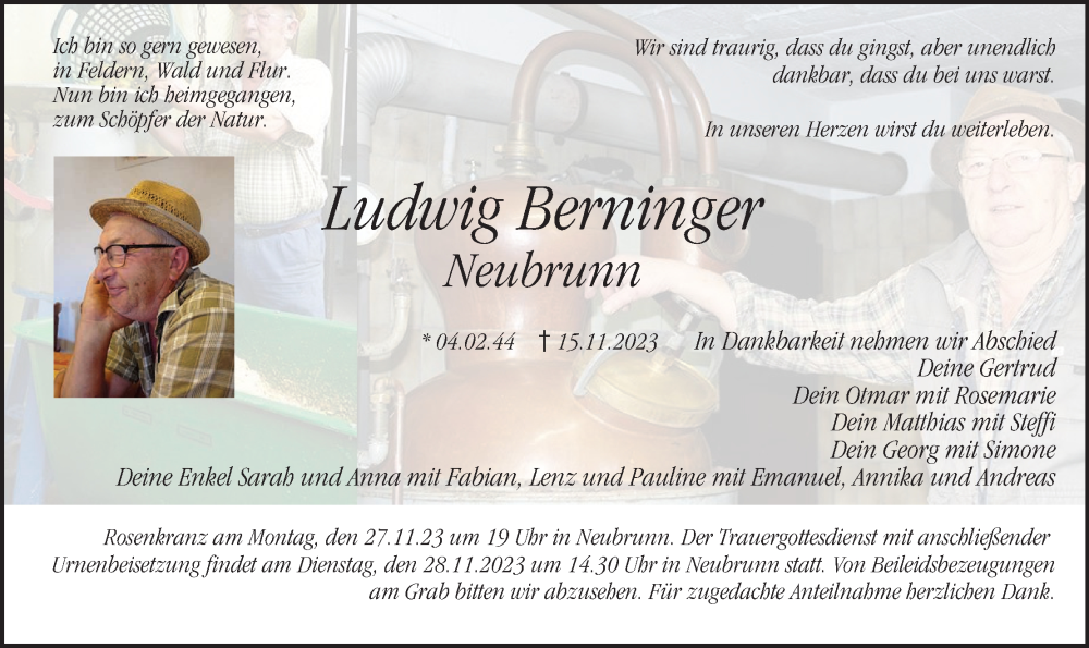 Hier finden Sie alle Traueranzeigen aus der Zeitung, die bisher für Ludwig Berninger erschienen sind. Weitere Traueranzeigen, die in der Zeitung erscheinen, werden hier ebenfalls aufgelistet
