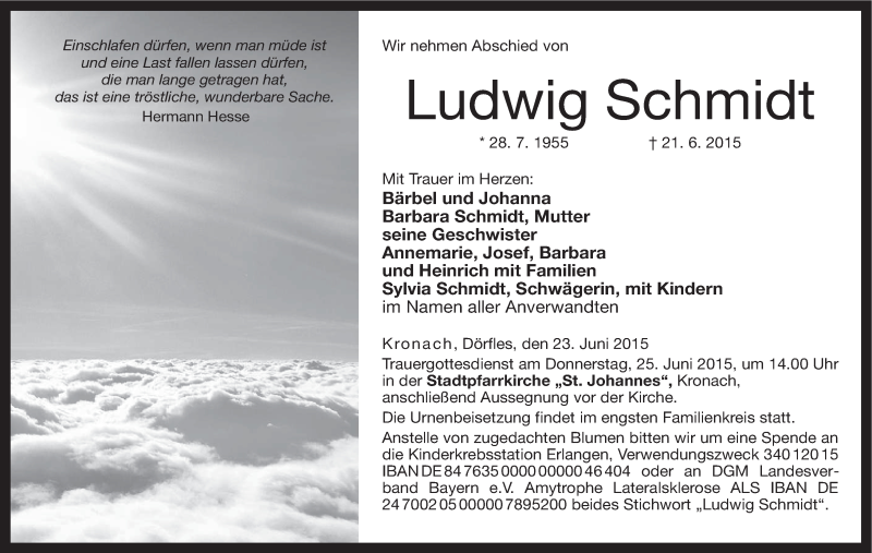 Hier finden Sie alle Traueranzeigen aus der Zeitung, die bisher für Ludwig Schmidt erschienen sind. Weitere Traueranzeigen, die in der Zeitung erscheinen, werden hier ebenfalls aufgelistet