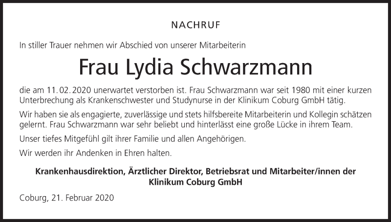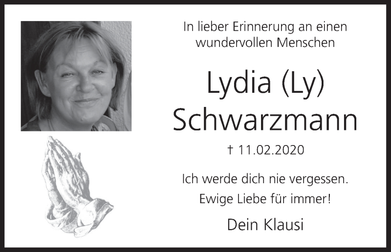Hier finden Sie alle Traueranzeigen aus der Zeitung, die bisher für Lydia Schwarzmann erschienen sind. Weitere Traueranzeigen, die in der Zeitung erscheinen, werden hier ebenfalls aufgelistet