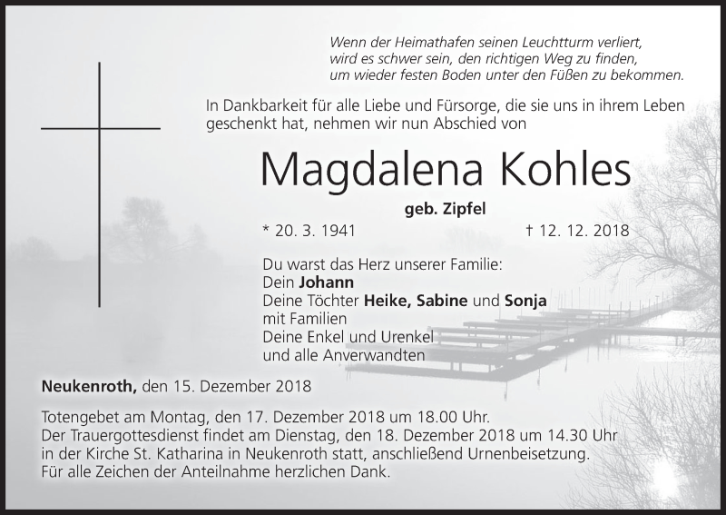 Hier finden Sie alle Traueranzeigen aus der Zeitung, die bisher für Magdalena Kohles erschienen sind. Weitere Traueranzeigen, die in der Zeitung erscheinen, werden hier ebenfalls aufgelistet
