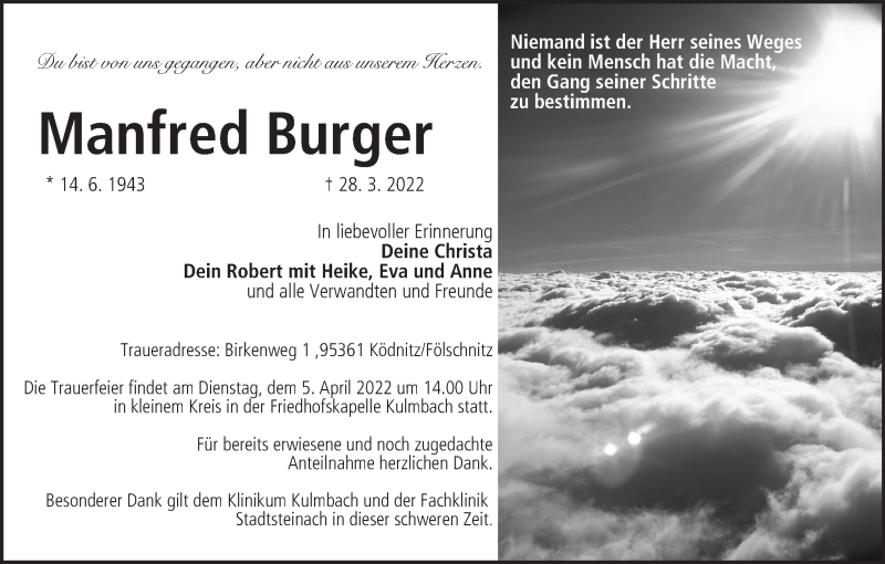Hier finden Sie alle Traueranzeigen aus der Zeitung, die bisher für Manfred Burger erschienen sind. Weitere Traueranzeigen, die in der Zeitung erscheinen, werden hier ebenfalls aufgelistet