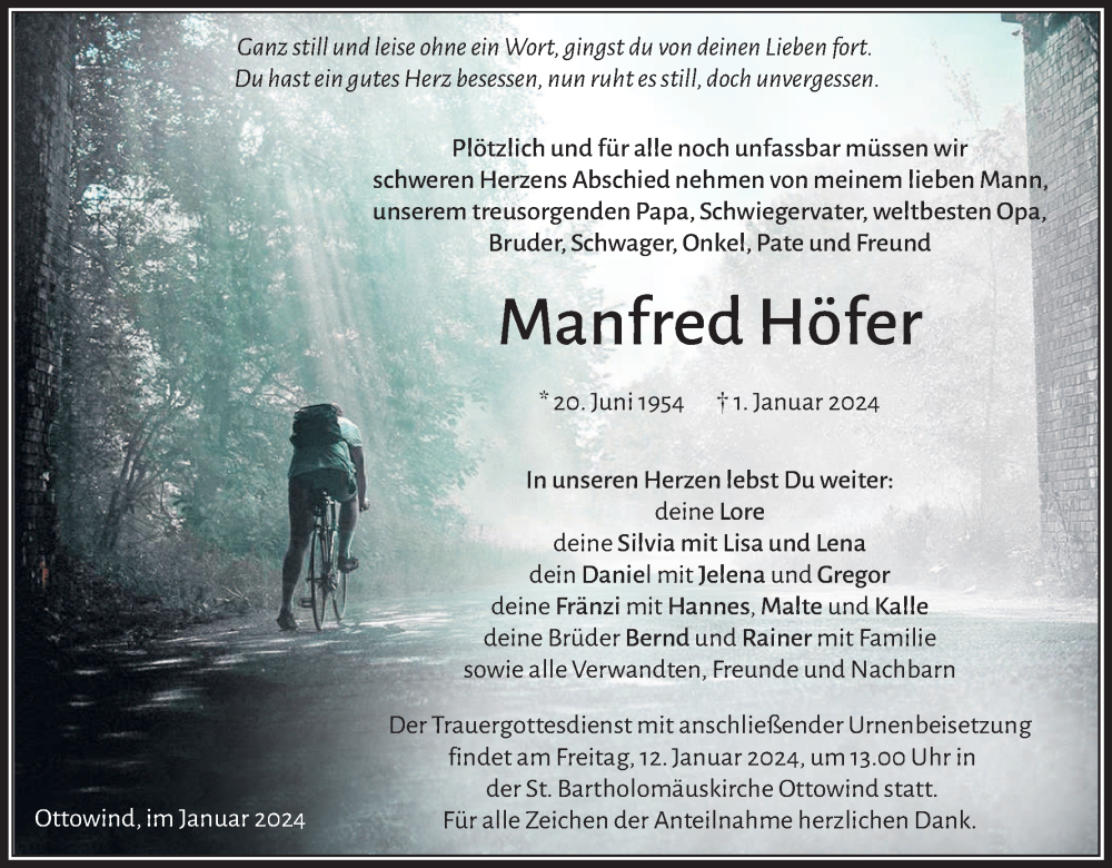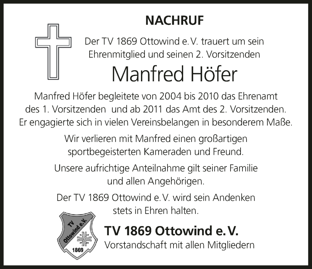 Hier finden Sie alle Traueranzeigen aus der Zeitung, die bisher für Manfred Höfer erschienen sind. Weitere Traueranzeigen, die in der Zeitung erscheinen, werden hier ebenfalls aufgelistet