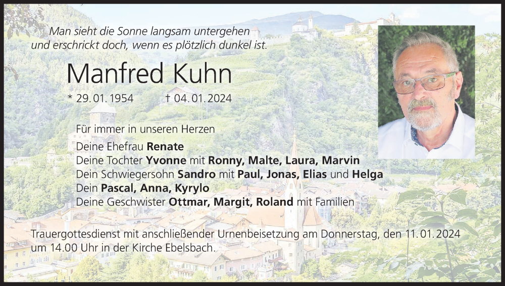 Hier finden Sie alle Traueranzeigen aus der Zeitung, die bisher für Manfred Kuhn erschienen sind. Weitere Traueranzeigen, die in der Zeitung erscheinen, werden hier ebenfalls aufgelistet