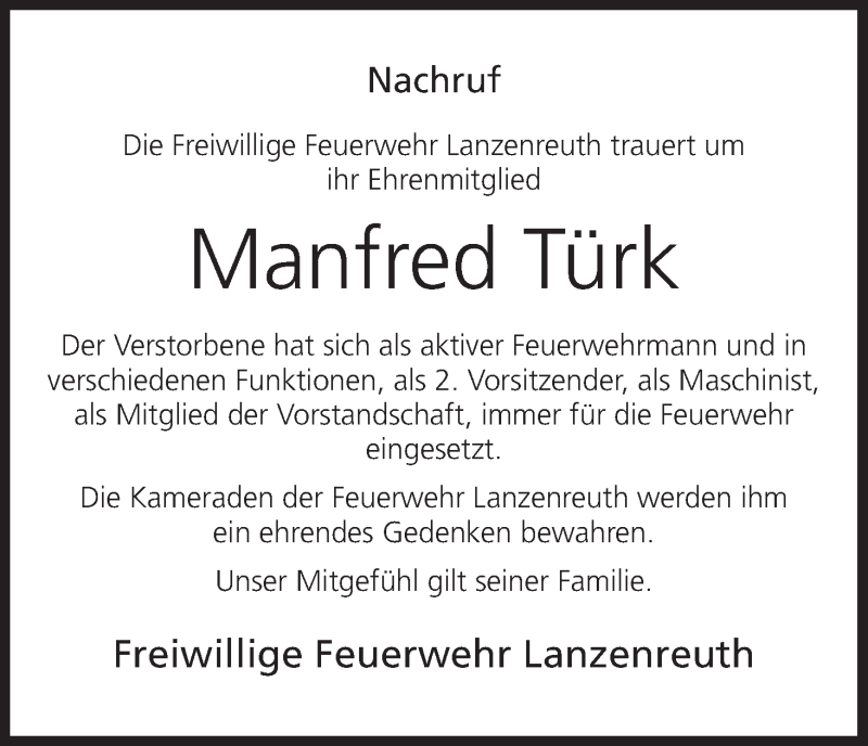 Hier finden Sie alle Traueranzeigen aus der Zeitung, die bisher für Manfred Türk erschienen sind. Weitere Traueranzeigen, die in der Zeitung erscheinen, werden hier ebenfalls aufgelistet