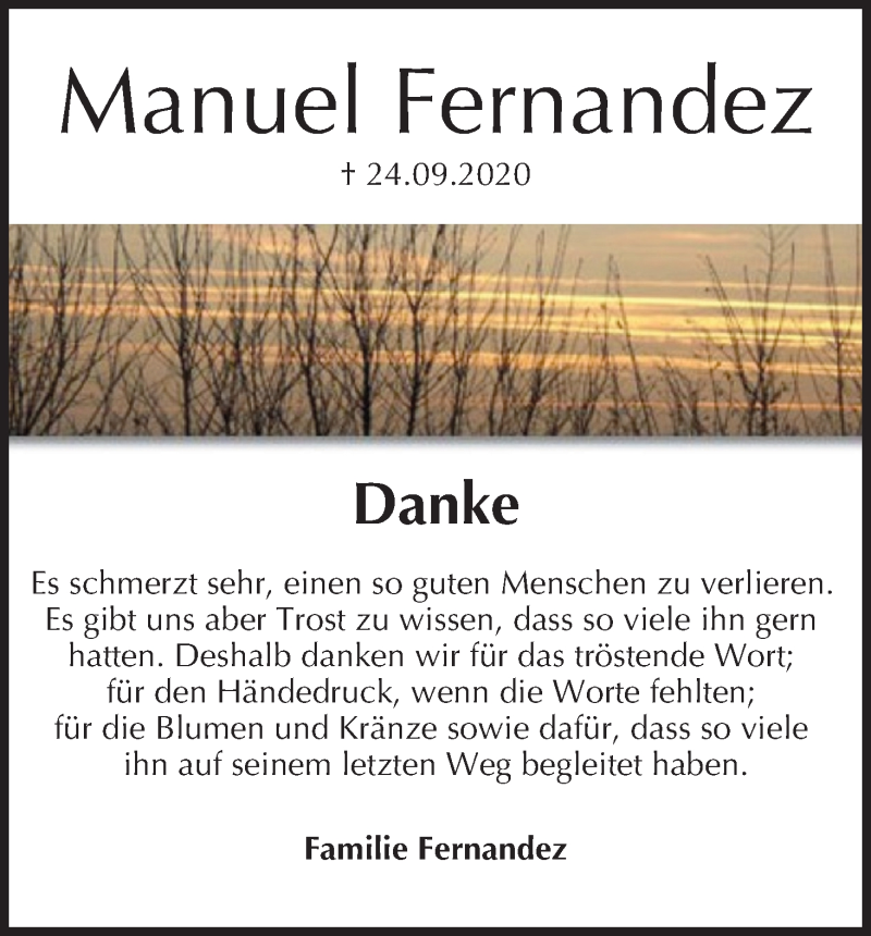 Hier finden Sie alle Traueranzeigen aus der Zeitung, die bisher für Manuel Fernandez erschienen sind. Weitere Traueranzeigen, die in der Zeitung erscheinen, werden hier ebenfalls aufgelistet