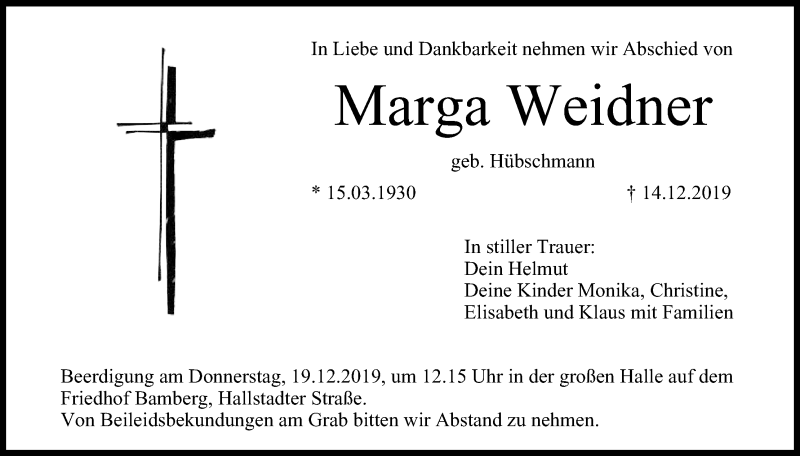 Hier finden Sie alle Traueranzeigen aus der Zeitung, die bisher für Marga Weidner erschienen sind. Weitere Traueranzeigen, die in der Zeitung erscheinen, werden hier ebenfalls aufgelistet