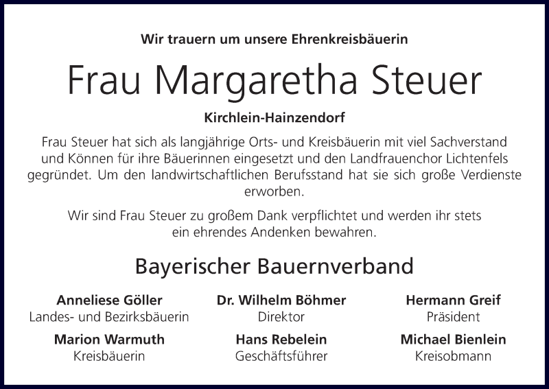 Hier finden Sie alle Traueranzeigen aus der Zeitung, die bisher für Margaretha Steuer erschienen sind. Weitere Traueranzeigen, die in der Zeitung erscheinen, werden hier ebenfalls aufgelistet
