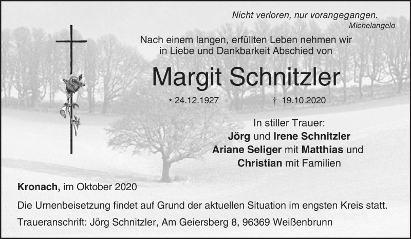 Hier finden Sie alle Traueranzeigen aus der Zeitung, die bisher für Margit Schnitzler erschienen sind. Weitere Traueranzeigen, die in der Zeitung erscheinen, werden hier ebenfalls aufgelistet