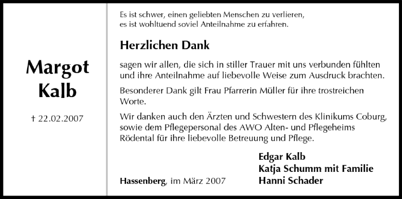 Hier finden Sie alle Traueranzeigen aus der Zeitung, die bisher für Margot Kalb erschienen sind. Weitere Traueranzeigen, die in der Zeitung erscheinen, werden hier ebenfalls aufgelistet