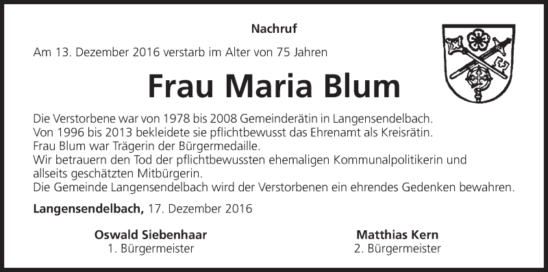 Hier finden Sie alle Traueranzeigen aus der Zeitung, die bisher für Maria Blum erschienen sind. Weitere Traueranzeigen, die in der Zeitung erscheinen, werden hier ebenfalls aufgelistet