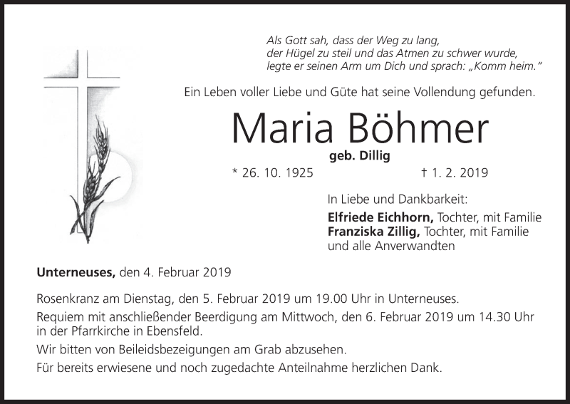 Hier finden Sie alle Traueranzeigen aus der Zeitung, die bisher für Maria Böhmer erschienen sind. Weitere Traueranzeigen, die in der Zeitung erscheinen, werden hier ebenfalls aufgelistet