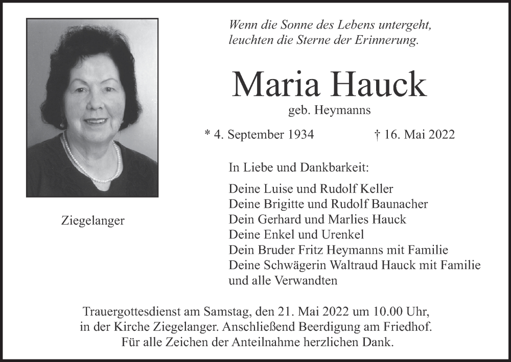Hier finden Sie alle Traueranzeigen aus der Zeitung, die bisher für Maria Hauck erschienen sind. Weitere Traueranzeigen, die in der Zeitung erscheinen, werden hier ebenfalls aufgelistet