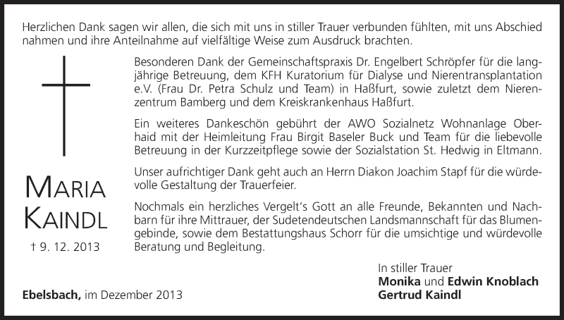 Hier finden Sie alle Traueranzeigen aus der Zeitung, die bisher für Maria Kaindl erschienen sind. Weitere Traueranzeigen, die in der Zeitung erscheinen, werden hier ebenfalls aufgelistet