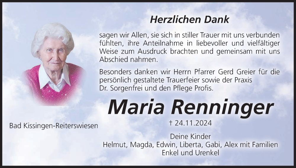 Hier finden Sie alle Traueranzeigen aus der Zeitung, die bisher für Maria Renninger erschienen sind. Weitere Traueranzeigen, die in der Zeitung erscheinen, werden hier ebenfalls aufgelistet