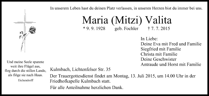 Hier finden Sie alle Traueranzeigen aus der Zeitung, die bisher für Maria Valita erschienen sind. Weitere Traueranzeigen, die in der Zeitung erscheinen, werden hier ebenfalls aufgelistet