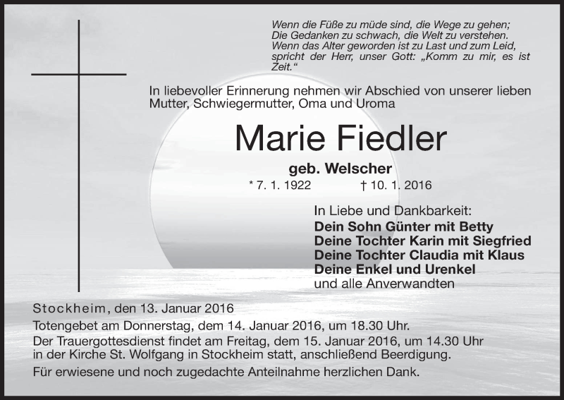 Hier finden Sie alle Traueranzeigen aus der Zeitung, die bisher für Marie Fiedler erschienen sind. Weitere Traueranzeigen, die in der Zeitung erscheinen, werden hier ebenfalls aufgelistet