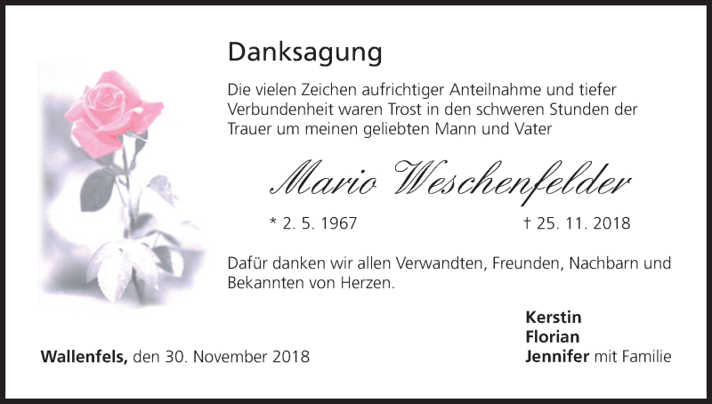 Hier finden Sie alle Traueranzeigen aus der Zeitung, die bisher für Mario Weschenfelder erschienen sind. Weitere Traueranzeigen, die in der Zeitung erscheinen, werden hier ebenfalls aufgelistet