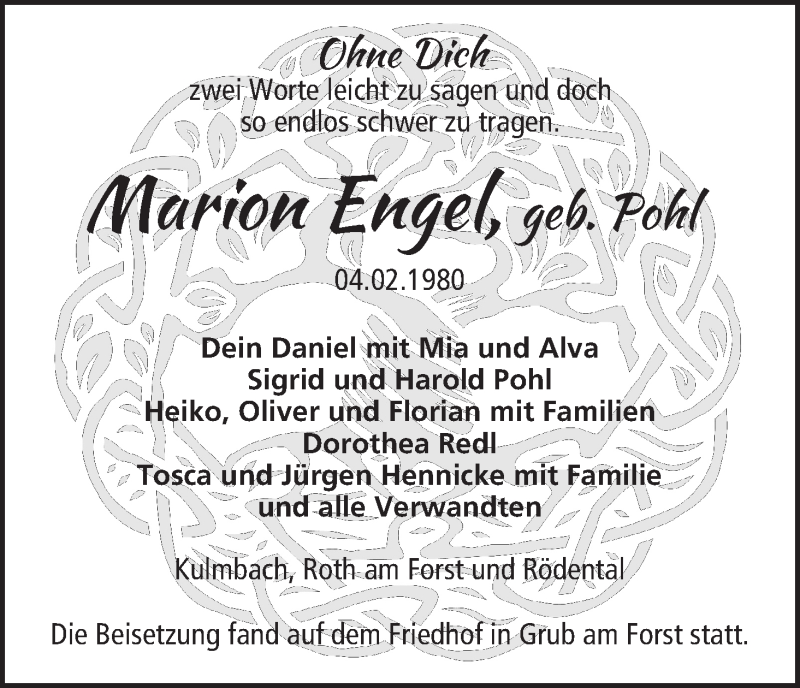 Hier finden Sie alle Traueranzeigen aus der Zeitung, die bisher für Marion Engel erschienen sind. Weitere Traueranzeigen, die in der Zeitung erscheinen, werden hier ebenfalls aufgelistet