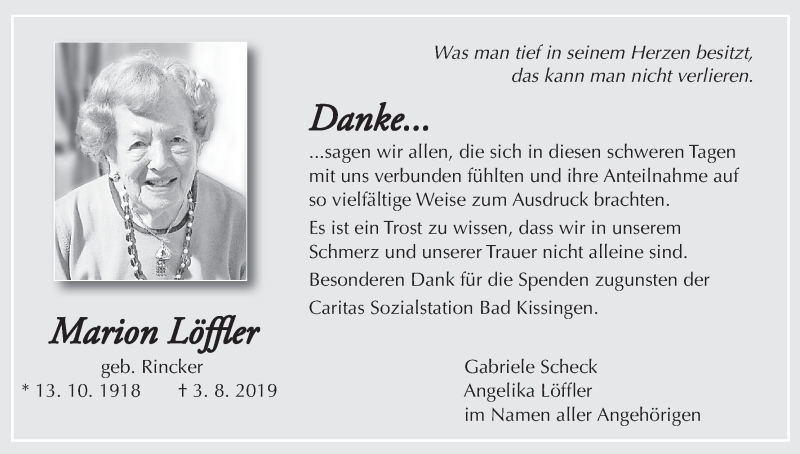 Hier finden Sie alle Traueranzeigen aus der Zeitung, die bisher für Marion Löffler erschienen sind. Weitere Traueranzeigen, die in der Zeitung erscheinen, werden hier ebenfalls aufgelistet