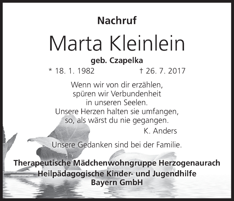Hier finden Sie alle Traueranzeigen aus der Zeitung, die bisher für Marta Kleinlein erschienen sind. Weitere Traueranzeigen, die in der Zeitung erscheinen, werden hier ebenfalls aufgelistet