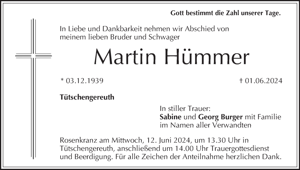 Hier finden Sie alle Traueranzeigen aus der Zeitung, die bisher für Martin Hümmer erschienen sind. Weitere Traueranzeigen, die in der Zeitung erscheinen, werden hier ebenfalls aufgelistet