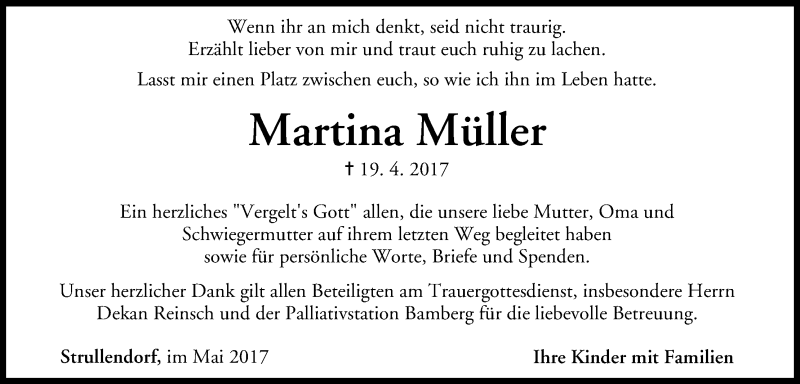 Hier finden Sie alle Traueranzeigen aus der Zeitung, die bisher für Martina Müller erschienen sind. Weitere Traueranzeigen, die in der Zeitung erscheinen, werden hier ebenfalls aufgelistet