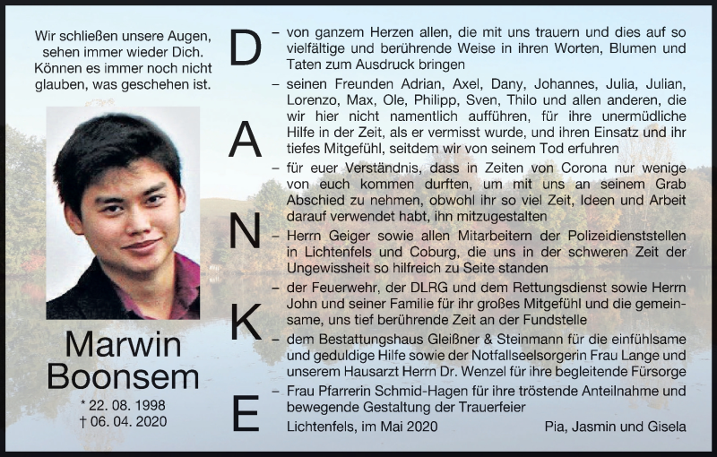 Hier finden Sie alle Traueranzeigen aus der Zeitung, die bisher für Marwin Boonsem erschienen sind. Weitere Traueranzeigen, die in der Zeitung erscheinen, werden hier ebenfalls aufgelistet