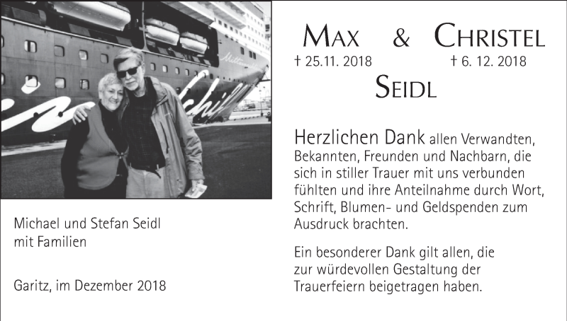 Hier finden Sie alle Traueranzeigen aus der Zeitung, die bisher für Max Seidl erschienen sind. Weitere Traueranzeigen, die in der Zeitung erscheinen, werden hier ebenfalls aufgelistet