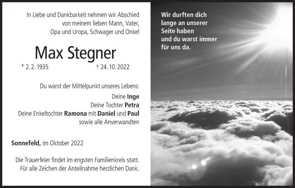 Hier finden Sie alle Traueranzeigen aus der Zeitung, die bisher für MAx Stegner erschienen sind. Weitere Traueranzeigen, die in der Zeitung erscheinen, werden hier ebenfalls aufgelistet