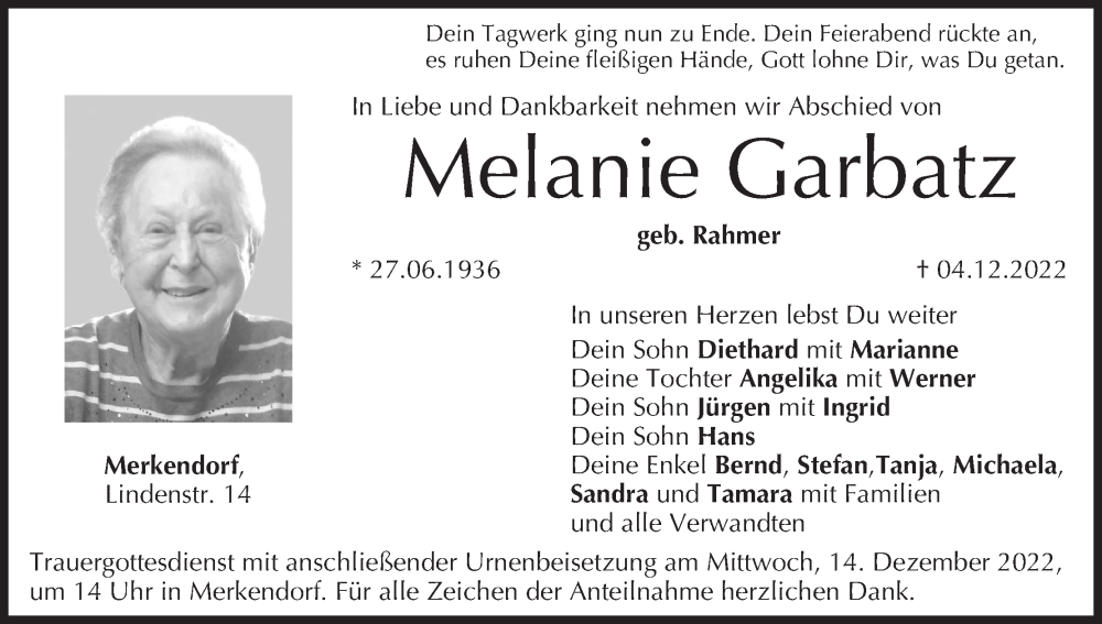 Hier finden Sie alle Traueranzeigen aus der Zeitung, die bisher für Melanie Garbatz erschienen sind. Weitere Traueranzeigen, die in der Zeitung erscheinen, werden hier ebenfalls aufgelistet