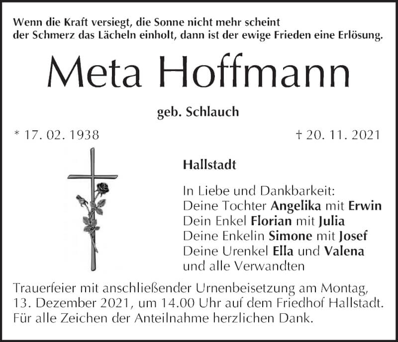 Hier finden Sie alle Traueranzeigen aus der Zeitung, die bisher für Meta Hoffmann erschienen sind. Weitere Traueranzeigen, die in der Zeitung erscheinen, werden hier ebenfalls aufgelistet